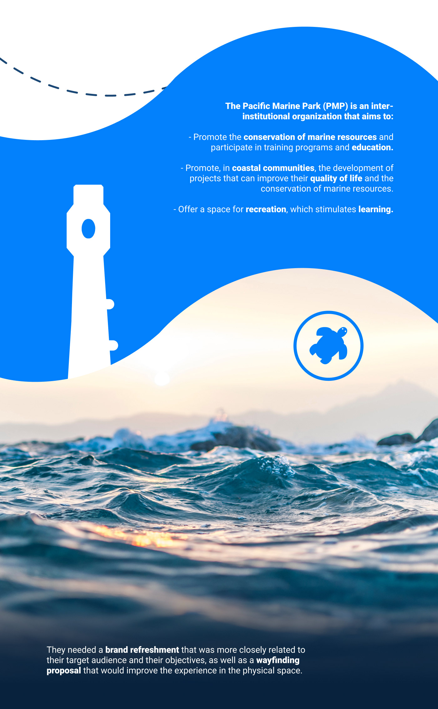Redesign of visual identity and wayfinding for the Pacific Marine Park, using Design Thinking methodology.